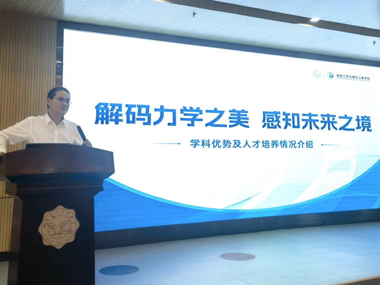金科向全体新生介绍了公司的基本情况,回顾了“半部电台起家,长征路上办学”的红色校史,介绍了公司服务国家战略急需和重大工程的硬核实力。她鼓励全体新生在信息、力学、遥感的交叉领域深入思考,善于利用公司和公司提供的各种平台资源,为科技前沿突破、重大工程攻关贡献力量。